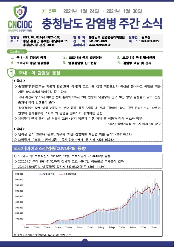 감염병 주간 소식지(통권 제21-5호) 입니다.