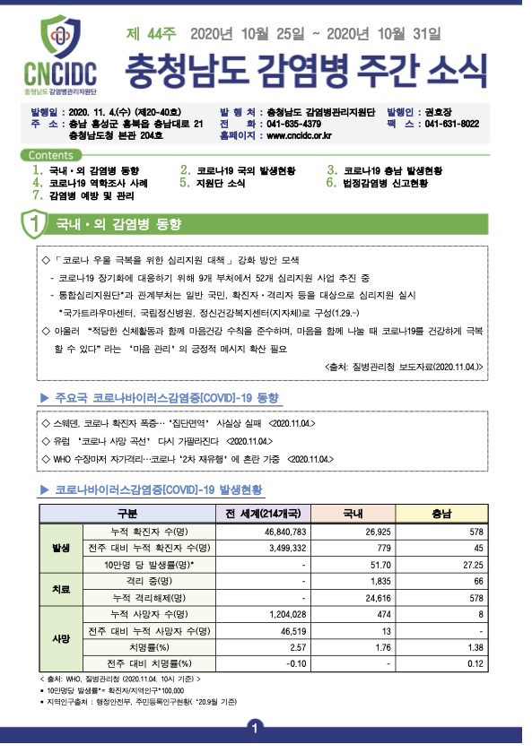 감염병 주간 소식지(통권 제20-40호) 입니다.
