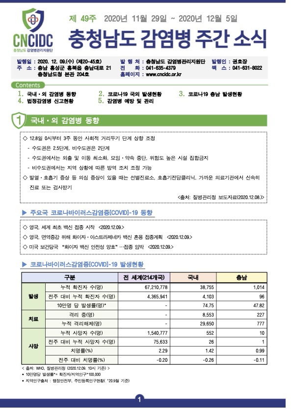감염병 주간 소식지(통권 제20-45호) 입니다.
