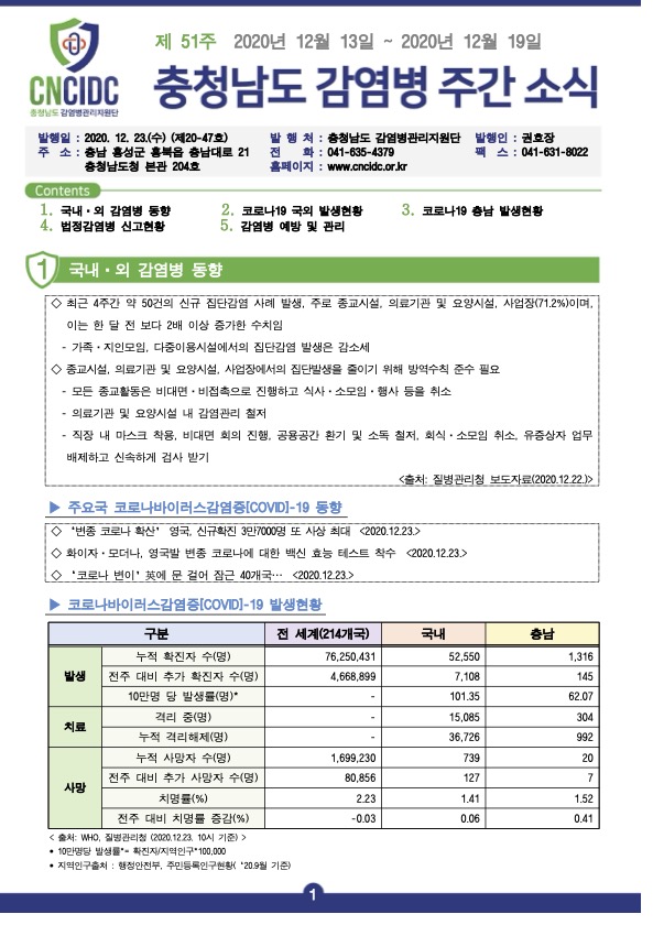 감염병 주간 소식지(통권 제20-47호) 입니다.