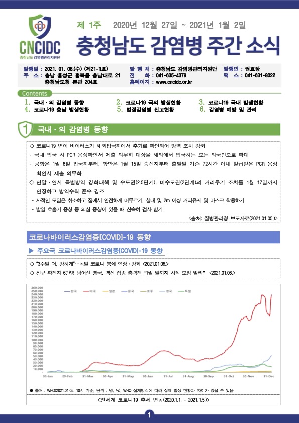 감염병 주간 소식지(통권 제21-1호) 입니다.