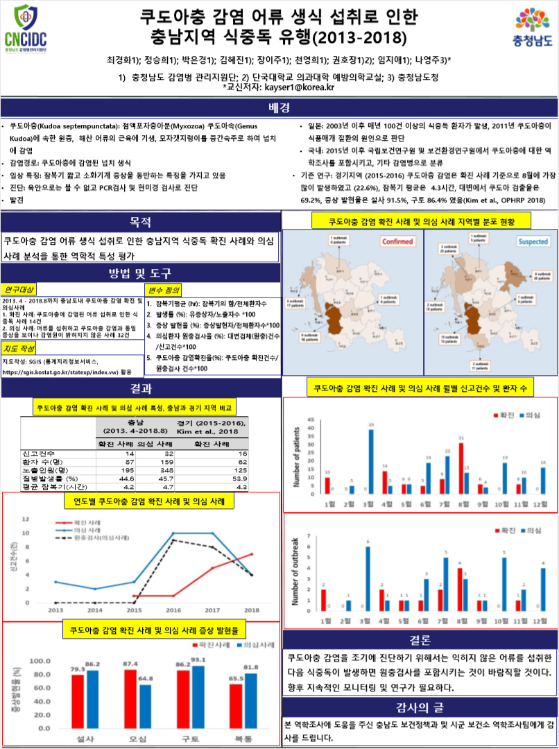 [포스터]2018년 대한예방의학회 추계학술대회_쿠도아충 감염 어류 생식 섭취로 인한 충남지역 식중독 유행