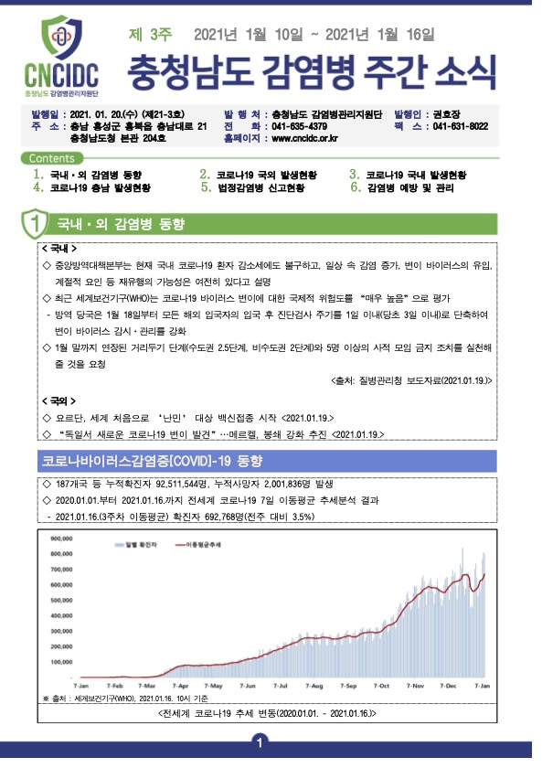 감염병 주간 소식지(통권 제21-3호) 입니다.