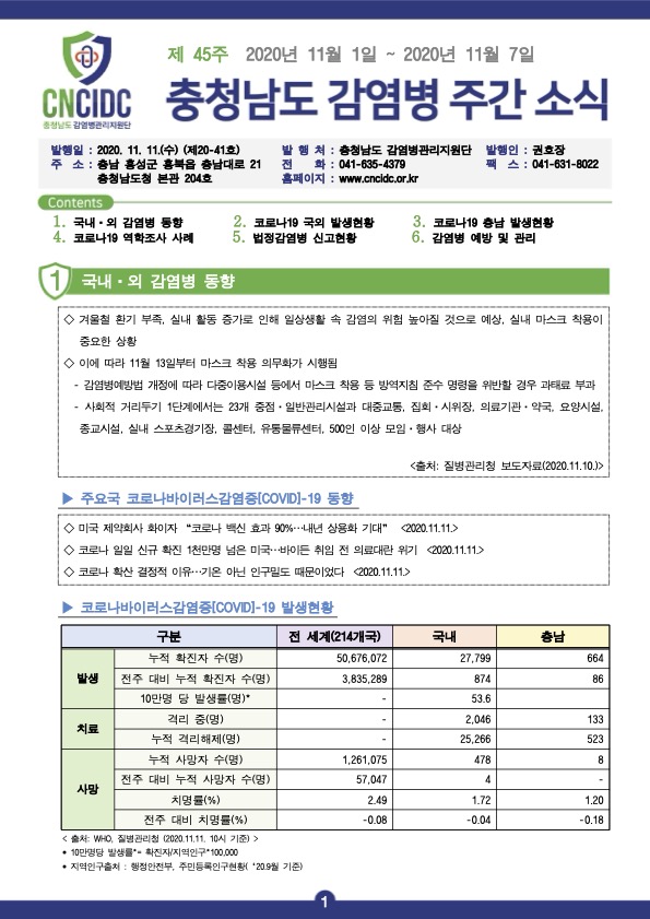 감염병 주간 소식지(통권 제20-41호) 입니다.