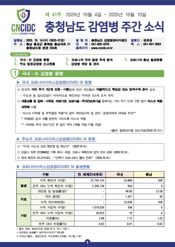 감염병 주간 소식지(통권 제20-37호) 입니다.
