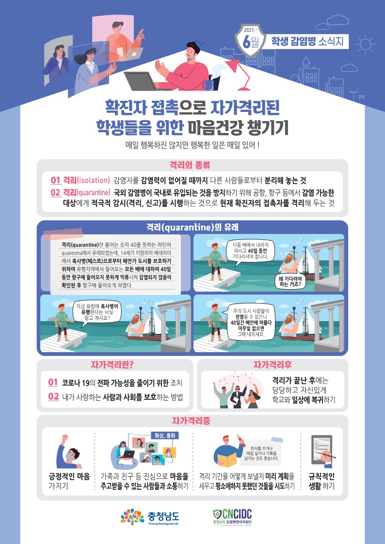 2021년 6월호(확진자 접촉으로 자가격리된 학생들을 위한 마음건강 챙기기) 입니다.